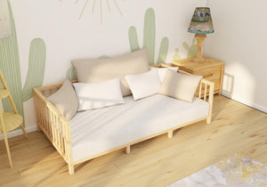 Our Jackson Daybed is a multifunctional Montessori, serving as a Bed, a Couch and a Chaise Longue in your nursery. Made of charming pine wood, it is a great addition due to the variety of uses according to daily activities.