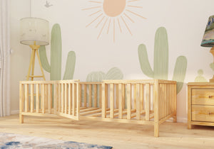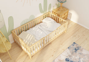 Aurora is a children's floor bed designed in accordance with the Montessori philosophy allowing little ones to get in and out of bed on their own. This encourages children's independence and increases their freedom of movement.