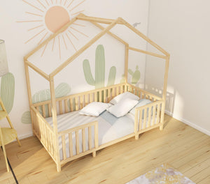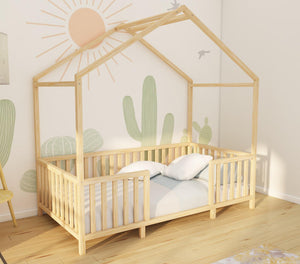 Cypress is a playhouse-style low 8 leg bed with a centered entrance & rectangular prism slats