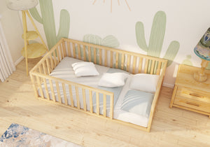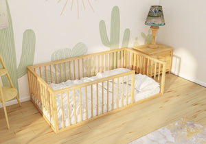 Brooklyn is a Montessori Floor Bed with a choice of rails and right hand side entrance